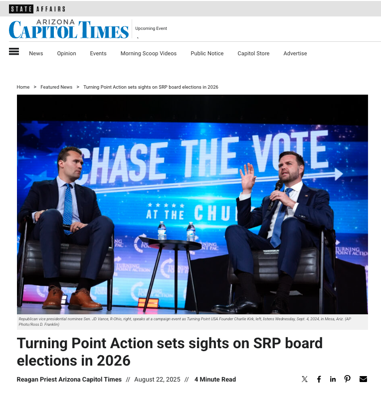 We’ve known for 6 months that Turning Point USA intends to participate heavily in the SRP board election.